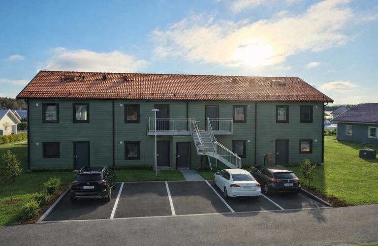 Småskaligt, nybyggt och familjevänligt. I Enbacken i Skolsta växer sex nya hem med radhuskänsla fram – i två olika storlekar som passar både barnfamiljer och dig som söker ett boende som är lagom stort när livet är i förändring. Här möts luftiga rum och en generös takhöjd, med uteplats eller balkong som förlänger bostaden och en gemensam gård som bjuder in till fler utomhusdagar än planerat. Ett hem att trivas i från första dagen.